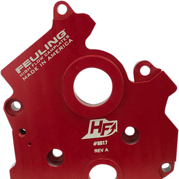 Caracteristicas: Increase engine oil flow and volume by enlarging the oil pump reservoirs and critical oil passages including the scavenging return holes from the pump to the camplate and into the engine case Camplate matches the oil port holes on the camplate to the oil holes in the engine case to increase oil flow throughout the engine Lowers engine temperatures by 15-25 degrees and oil running temperature by 15-25 degrees 7075 billet aluminum construction, which is 50% harder and stronger than the factory cast and Feuling® OE+ camplates Increases the strength and hardness of the camplate, holding tighter tolerances under temperature and eliminating flexing and the need for bronze bushings When matched with the Feuling® Race Series Oil Pump, rear wheel power gains of 2 horsepower and 2 ft. lb. of torque can be achieved Made in the U.S.A.