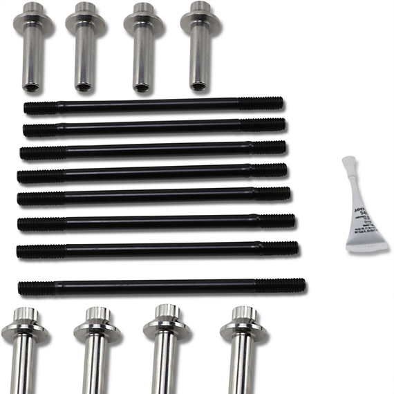 Caracteristicas: Stop head and base gasket failure Stock replacement; reusable studs and head bolts recommended for all V-Twin engines Designed to exceed the needs of high-performance engines Precision J-formed threads prevent galling and promote more consistent torque loading Manufactured by ARP® to Feuling's exact specifications Kit includes eight cylinder studs, eight headbolts, moly assembly lubricant and thread sealant Made in the U.S.A.