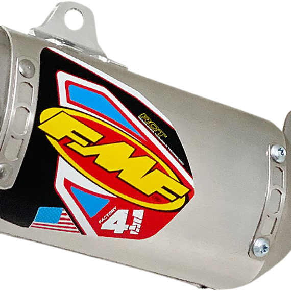 Caracteristicas: Factory 4.1 muffler available in natural titanium or blue anodized titanium with titanium end caps The lightest mufflers available Superior power and performance - horsepower improved throughout the rpm range Feature exclusive proprietary Chamber Core technology Factory Forward Engineering centralizes mass, improves handling Made from premium quality American materials Customize with performance tuning inserts and spark arrestor module Meet AMA sound requirements on most models; inserts available for others