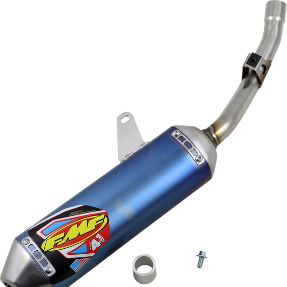 Caracteristicas: Factory 4.1 muffler available in natural titanium or blue anodized titanium with titanium end caps The lightest mufflers available Superior power and performance - horsepower improved throughout the rpm range Feature exclusive proprietary Chamber Core technology Factory Forward Engineering centralizes mass, improves handling Made from premium quality American materials Customize with performance tuning inserts and spark arrestor module Meet AMA sound requirements on most models; inserts available for others