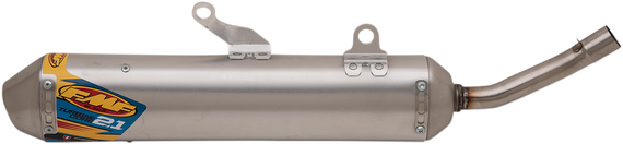 Caracteristicas: The straight through design of the spark arrestor canister and the performance flow stainless steel end cap ensures strength, durability and most importantly, track and trail proven unrestricted power The 2.1 utilizes a shape inspired by the 4.1 system Utilizes exclusive FMF "Turbine Dampening System" U.S. Forest Service legal status