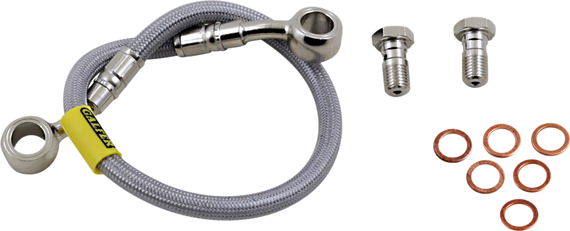 Caracteristicas: Requires less pressure at the lever, allowing the rider to use less force while stopping the bike faster and with better feel Fittings come from the factory pre-positioned but can swivel 180° if necessary to make the installation process easier Include a clear outer coating which protects the bike from scratches and the lines from humidity Complete with all necessary banjo bolts and washers and ready to install