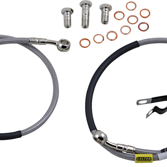 Caracteristicas: Requires less pressure at the lever, allowing the rider to use less force while stopping the bike faster and with better feel Fittings come from the factory pre-positioned but can swivel 180° if necessary to make the installation process easier Include a clear outer coating which protects the bike from scratches and the lines from humidity Complete with all necessary banjo bolts and washers and ready to install