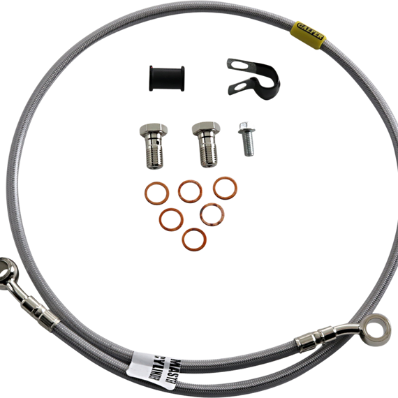 Caracteristicas: Requires less pressure at the lever, allowing the rider to use less force while stopping the bike faster and with better feel Fittings come from the factory pre-positioned but can swivel 180° if necessary to make the installation process easier Include a clear outer coating which protects the bike from scratches and the lines from humidity Complete with all necessary banjo bolts and washers and ready to install