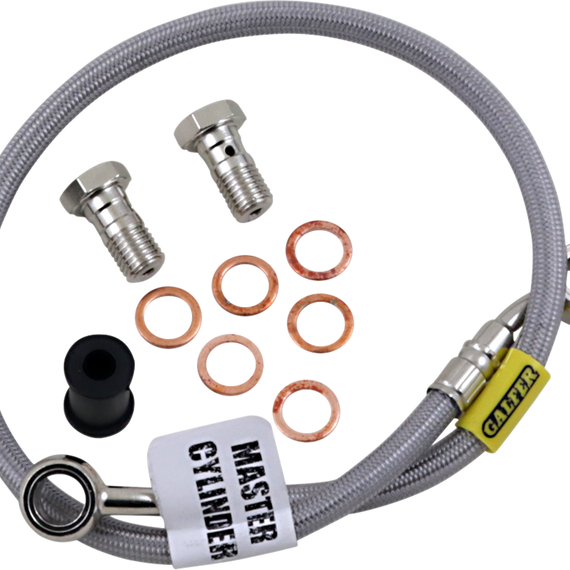 Caracteristicas: 64 braided strands of steel around the line, making the line have zero expansion at any time - better than any other braided line Requires less pressure at the lever, allowing the rider to use less force while stopping the bike faster and with better feel Fittings come from the factory pre-positioned but can swivel 180° if necessary to make the installation process easier Include a clear outer coating which protects the bike from scratches and the lines from humidity Complete with all necessary banjo bolts and washers Ready to install