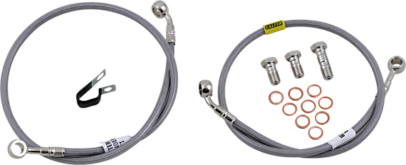 Caracteristicas: Requires less pressure at the lever, allowing the rider to use less force while stopping the bike faster and with better feel Fittings come from the factory pre-positioned but can swivel 180° if necessary to make the installation process easier Include a clear outer coating which protects the bike from scratches and the lines from humidity Complete with all necessary banjo bolts and washers and ready to install