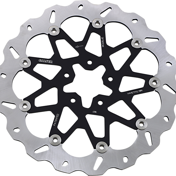 Caracteristicas: Laser-cut double disc ground 420 high carbon stainless steel Direct-replacement brake rotors; do not require any extra parts, bolt on just like a stock brake disc Full-floating design rotors have an aluminum center carrier Improves brake lever feel and modulation Rotors cool as they rotate to lower brake operating temperatures Design is self-cleaning, removes water as it rotates Less tendency to warp Manufactured in Spain For maximum braking performance and rotor longevity, Galfer recommends using Galfer brake pads with Galfer rotors.