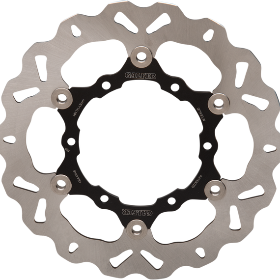 Caracteristicas: Laser-cut double disc ground 420 high carbon stainless steel Direct-replacement brake rotors; do not require any extra parts, bolt on just like a stock brake disc Full-floating design rotors have an aluminum center carrier Improves brake lever feel and modulation Rotors cool as they rotate to lower brake operating temperatures Design is self-cleaning, removes water as it rotates Less tendency to warp Manufactured in Spain For maximum braking performance and rotor longevity, Galfer recommends using Galfer brake pads with Galfer rotors.