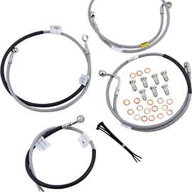Caracteristicas: Requires less pressure at the lever, allowing the rider to use less force while stopping the bike faster and with better feelFittings come from the factory pre-positioned but can swivel 180° if necessary to make the installation process easierInclude a clear outer coating which protects the bike from scratches and the lines from humidityComplete with all necessary banjo bolts and washers and ready to installPeso: 1.5 Alto: 2.0 Largo: 10.0 Ancho: 7.75 Aditamentos:RC 390 : 2014...
