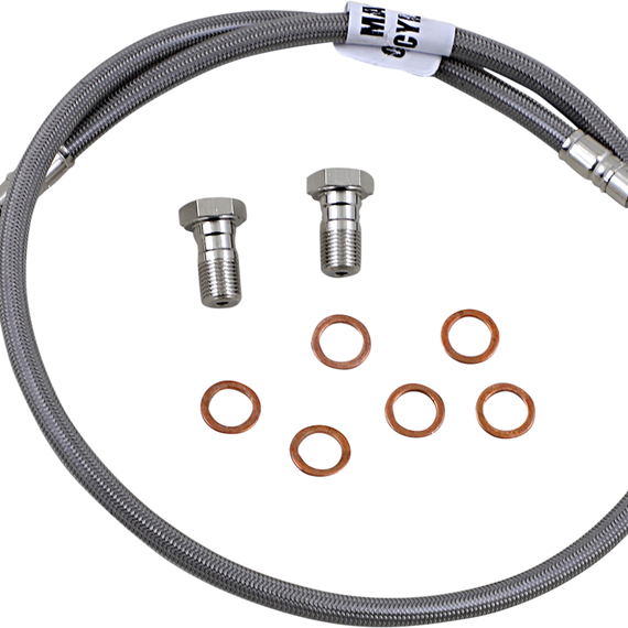 Caracteristicas: Requires less pressure at the lever, allowing the rider to use less force while stopping the bike faster and with better feel Fittings come from the factory pre-positioned but can swivel 180° if necessary to make the installation process easier Include a clear outer coating which protects the bike from scratches and the lines from humidity Complete with all necessary banjo bolts and washers and ready to install
