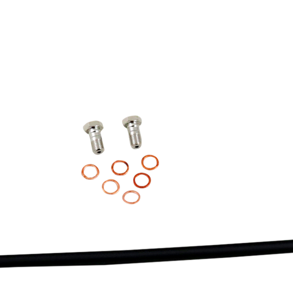 Caracteristicas: 64 braided strands of steel around the line, making the line have zero expansion at any time - better than any other braided line Requires less pressure at the lever, allowing the rider to use less force while stopping the bike faster and with better feel Fittings come from the factory pre-positioned but can swivel 180° if necessary to make the installation process easier Include a clear outer coating which protects the bike from scratches and the lines from humidity Complete with all necessary banjo bolts and washers Ready to install