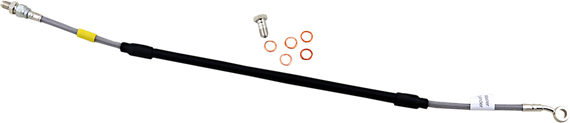 Caracteristicas: 64 braided strands of steel around the line, making the line have zero expansion at any time - better than any other braided line Requires less pressure at the lever, allowing the rider to use less force while stopping the bike faster and with better feel Fittings come from the factory pre-positioned but can swivel 180° if necessary to make the installation process easier Include a clear outer coating which protects the bike from scratches and the lines from humidity Complete with all necessary banjo bolts and washers Ready to install
