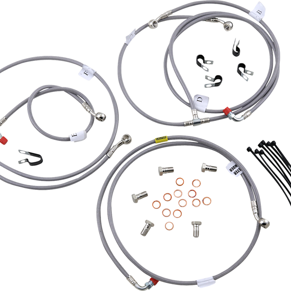 Caracteristicas: Requires less pressure at the lever, allowing the rider to use less force while stopping the bike faster and with better feel Fittings come from the factory pre-positioned but can swivel 180° if necessary to make the installation process easier Include a clear outer coating which protects the bike from scratches and the lines from humidity Complete with all necessary banjo bolts and washers and ready to install