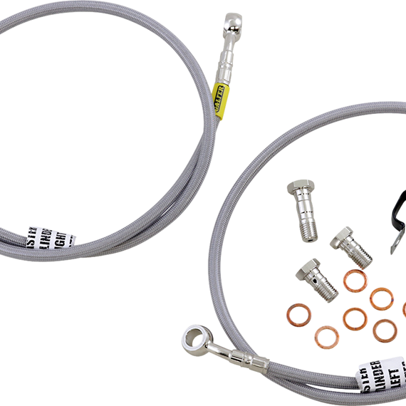 Caracteristicas: Requires less pressure at the lever, allowing the rider to use less force while stopping the bike faster and with better feel Fittings come from the factory pre-positioned but can swivel 180° if necessary to make the installation process easier Include a clear outer coating which protects the bike from scratches and the lines from humidity Complete with all necessary banjo bolts and washers and ready to install