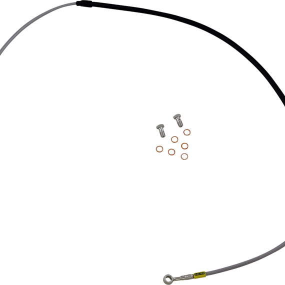 Caracteristicas: 64 braided strands of steel around the line, making the line have zero expansion at any time - better than any other braided line Requires less pressure at the lever, allowing the rider to use less force while stopping the bike faster and with better feel Fittings come from the factory pre-positioned but can swivel 180° if necessary to make the installation process easier Include a clear outer coating which protects the bike from scratches and the lines from humidity Complete with all necessary banjo bolts and washers Ready to install