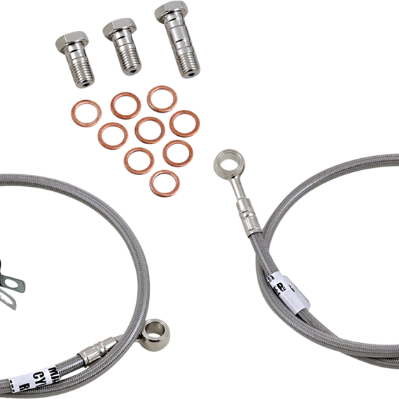 Caracteristicas: Requires less pressure at the lever, allowing the rider to use less force while stopping the bike faster and with better feel Fittings come from the factory pre-positioned but can swivel 180° if necessary to make the installation process easier Include a clear outer coating which protects the bike from scratches and the lines from humidity Complete with all necessary banjo bolts and washers and ready to install