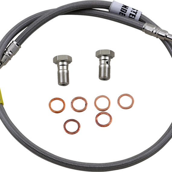 Caracteristicas: Requires less pressure at the lever, allowing the rider to use less force while stopping the bike faster and with better feel Fittings come from the factory pre-positioned but can swivel 180° if necessary to make the installation process easier Include a clear outer coating which protects the bike from scratches and the lines from humidity Complete with all necessary banjo bolts and washers and ready to install