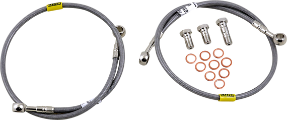 Caracteristicas: Requires less pressure at the lever, allowing the rider to use less force while stopping the bike faster and with better feel Fittings come from the factory pre-positioned but can swivel 180° if necessary to make the installation process easier Include a clear outer coating which protects the bike from scratches and the lines from humidity Complete with all necessary banjo bolts and washers and ready to install