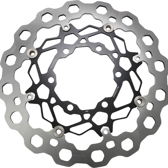Caracteristicas: Named after the crystal steel molecules, the Cubiq brake rotor combines state-of-the-art technology with modern design Rotor shape promotes uniform brake pad wear the contact surface between the pad and disc every revolution generates regular wear Less unsprung weight (up to 40% lighter than standard round rotors) reduces gyroscopic effect and improves the manueverability of the motorcycle Increased perimeter surface design generates more cooling surface around the rotor for better temperature dissipation