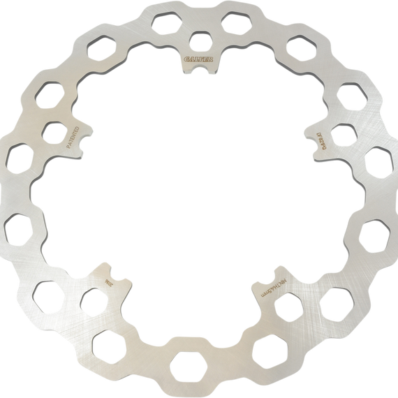 Caracteristicas: Named after the crystal steel molecules, the Cubiq brake rotor combines state-of-the-art technology with modern design Rotor shape promotes uniform brake pad wear the contact surface between the pad and disc every revolution generates regular wear Less unsprung weight (up to 40% lighter than standard round rotors) reduces gyroscopic effect and improves the manueverability of the motorcycle Increased perimeter surface design generates more cooling surface around the rotor for better temperature dissipation