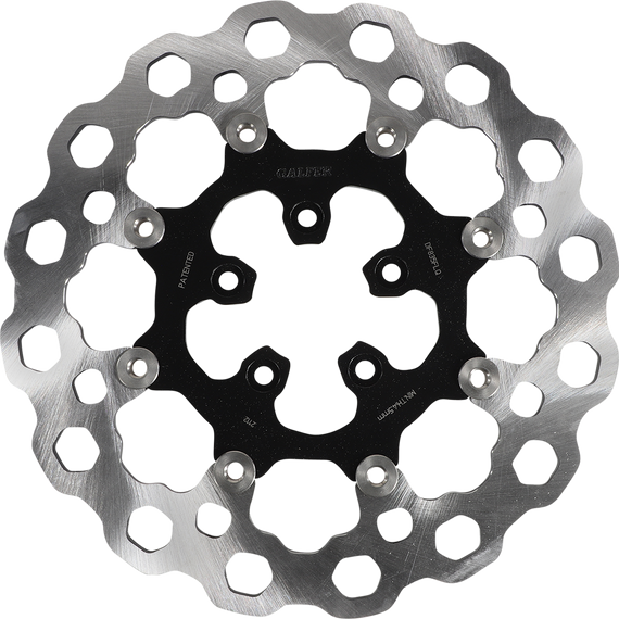 Caracteristicas: Named after the crystal steel molecules, the Cubiq brake rotor combines state-of-the-art technology with modern design Rotor shape promotes uniform brake pad wear the contact surface between the pad and disc every revolution generates regular wear Less unsprung weight (up to 40% lighter than standard round rotors) reduces gyroscopic effect and improves the manueverability of the motorcycle Increased perimeter surface design generates more cooling surface around the rotor for better temperature dissipation