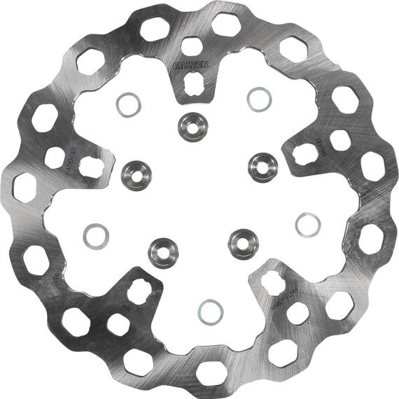 Caracteristicas: Named after the crystal steel molecules, the Cubiq brake rotor combines state-of-the-art technology with modern design Rotor shape promotes uniform brake pad wear the contact surface between the pad and disc every revolution generates regular wear Less unsprung weight (up to 40% lighter than standard round rotors) reduces gyroscopic effect and improves the manueverability of the motorcycle Increased perimeter surface design generates more cooling surface around the rotor for better temperature dissipation