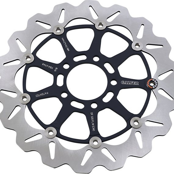 Caracteristicas: Laser-cut double disc ground 420 high carbon stainless steel Direct-replacement brake rotors; do not require any extra parts, bolt on just like a stock brake disc Full-floating design rotors have an aluminum center carrier Improves brake lever feel and modulation Rotors cool as they rotate to lower brake operating temperatures Design is self-cleaning, removes water as it rotates Less tendency to warp Manufactured in Spain For maximum braking performance and rotor longevity, Galfer recommends using Galfer brake pads with Galfer rotors.