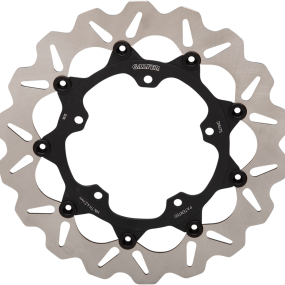 Caracteristicas: Laser-cut double disc ground 420 high carbon stainless steel Direct-replacement brake rotors; do not require any extra parts, bolt on just like a stock brake disc Full-floating design rotors have an aluminum center carrier Improves brake lever feel and modulation Rotors cool as they rotate to lower brake operating temperatures Design is self-cleaning, removes water as it rotates Less tendency to warp Manufactured in Spain For maximum braking performance and rotor longevity, Galfer recommends using Galfer brake pads with Galfer rotors.