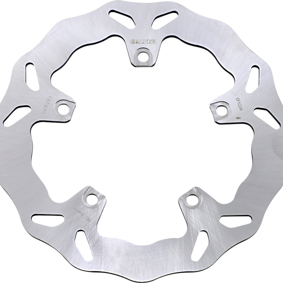 Caracteristicas: Laser-cut double disc ground 420 high carbon stainless steel Direct-replacement brake rotors; do not require any extra parts, bolt on just like a stock brake disc Full-floating design rotors have an aluminum center carrier Improves brake lever feel and modulation Rotors cool as they rotate to lower brake operating temperatures Design is self-cleaning, removes water as it rotates Less tendency to warp Manufactured in Spain For maximum braking performance and rotor longevity, Galfer recommends using Galfer brake pads with Galfer rotors.