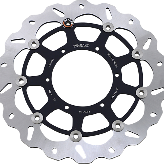 Caracteristicas: Laser-cut double disc ground 420 high carbon stainless steel Direct-replacement brake rotors; do not require any extra parts, bolt on just like a stock brake disc Full-floating design rotors have an aluminum center carrier Improves brake lever feel and modulation Rotors cool as they rotate to lower brake operating temperatures Design is self-cleaning, removes water as it rotates Less tendency to warp Manufactured in Spain For maximum braking performance and rotor longevity, Galfer recommends using Galfer brake pads with Galfer rotors.