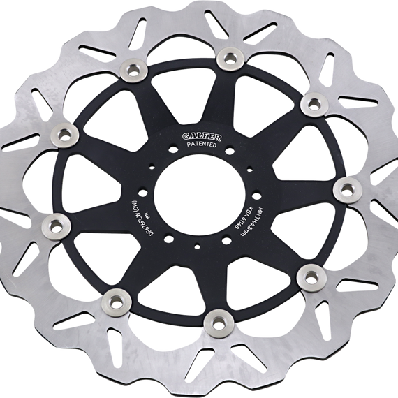 Caracteristicas: Laser-cut double disc ground 420 high carbon stainless steel Direct-replacement brake rotors; do not require any extra parts, bolt on just like a stock brake disc Full-floating design rotors have an aluminum center carrier Improves brake lever feel and modulation Rotors cool as they rotate to lower brake operating temperatures Design is self-cleaning, removes water as it rotates Less tendency to warp Manufactured in Spain For maximum braking performance and rotor longevity, Galfer recommends using Galfer brake pads with Galfer rotors.