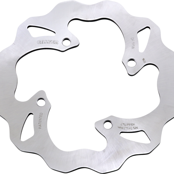Caracteristicas: Laser-cut double disc ground 420 high carbon stainless steel Direct-replacement brake rotors; do not require any extra parts, bolt on just like a stock brake disc Full-floating design rotors have an aluminum center carrier Improves brake lever feel and modulation Rotors cool as they rotate to lower brake operating temperatures Design is self-cleaning, removes water as it rotates Less tendency to warp Manufactured in Spain For maximum braking performance and rotor longevity, Galfer recommends using Galfer brake pads with Galfer rotors.