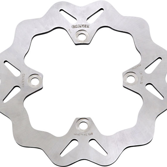 Caracteristicas: Laser-cut double disc ground 420 high carbon stainless steel Direct-replacement brake rotors; do not require any extra parts, bolt on just like a stock brake disc Full-floating design rotors have an aluminum center carrier Improves brake lever feel and modulation Rotors cool as they rotate to lower brake operating temperatures Design is self-cleaning, removes water as it rotates Less tendency to warp Manufactured in Spain For maximum braking performance and rotor longevity, Galfer recommends using Galfer brake pads with Galfer rotors.