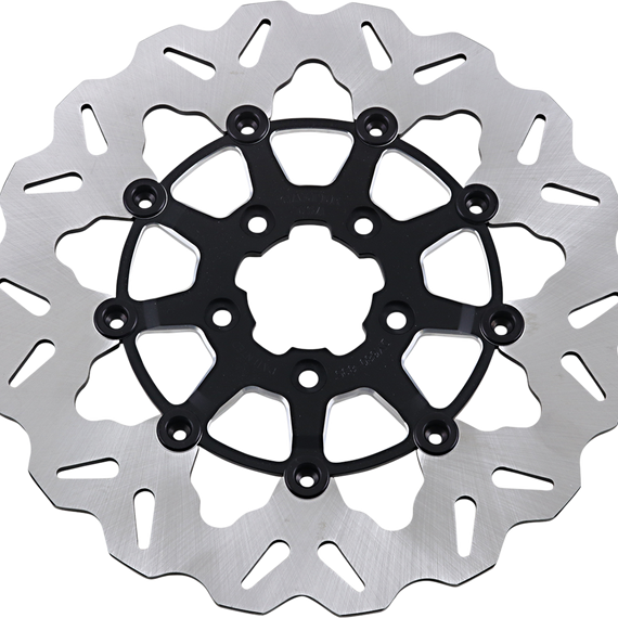 Caracteristicas: Made from 420 high-carbon stainless Tier-1 steel Laser cut, never stamped Each rotor is individually heat-treated and double-disc parallel ground to ensure perfect flatness Much lighter than a stock rotor WAVE® design allows for lower operating temperatures at extreme conditions Full floating design with black rotor carrier and silver contrast cut