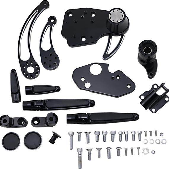 Caracteristicas: These new Softail Forward Controls feature a unique 3-way front to back adjustable position to suit almost any rider and providing maximum comfort. A proven 11/16" master cylinder bore size compatible with the stock rear caliper. Both the shifter and brake pivot assembly incorporate dual sealed bearings and bushings providing a smooth, positive actuation and long-term reliability.