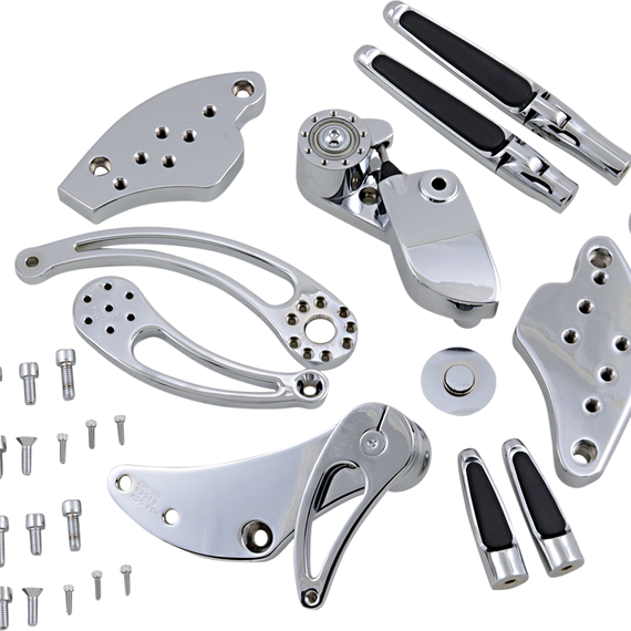 Caracteristicas: These new Softail Forward Controls feature a unique 3-way front to back adjustable position to suit almost any rider and providing maximum comfort. A proven 11/16" master cylinder bore size compatible with the stock rear caliper. Both the shifter and brake pivot assembly incorporate dual sealed bearings and bushings providing a smooth, positive actuation and long-term reliability.