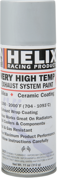 Caracteristicas: A great way to extend the life and color of exhaust system components Formulated for components that require high-temperature paint applications, including fiberglass exhaust wraps and pipes Exclusive ceramic formula increases heat dispersion to maintain and protect paint finish Withstands intermittent temperatures up to 2,000°F (1,093°C) Oil and gas resistant Also works on radiators, oil coolers, manifolds, engine cases, and more E-Z Touch spray nozzle delivers a professional spray pattern Available in 11-ounce net wt. aerosol cans Made in the U.S.A.