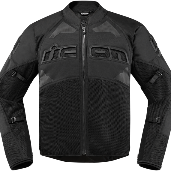 Caracteristicas: Durable nylon chassis Tried-and-true Iron Weave Mesh™ panels allow intake and exhaust airflow, dramatically reducing the chance of overheating Reinforced with ballistic nylon in the tumble zones Industry-leading removable CE-certified D3O® shoulder, elbow, and back impact protectors Cuff vents, reflective accents and anti-flap arm straps Removable, insulated SatinCore™ liner adds versatility for suddenly-changing weather Ratchet waist closure for a better fit Thermoplastic Polyurethane (TPU) chest badging Icon® Sport fit with straight body and articulated arms