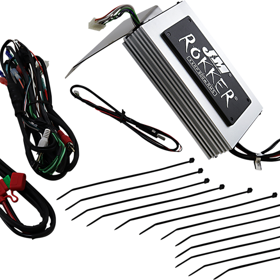 Caracteristicas: Application-specific amplifier kit Plug-n-play RCA input harnesses included take the 2-channels of audio signal available from the source and provide 4 separate channels at 800 watts 2 or 4-ohm speaker load (Manually selectable on the amplifier itself for a 2-ohm or 4-ohm speaker load) Full range class D digital amplifier properly shielded against RF interference into the AM or FM stereo radio bands Advanced digital switching power supply technology to dramatically reduce the 12v current demands on the motorcycle electrical system Amplifier mounts to the custom made stainless steel 2-piece bracket system, to provide solid and secure mounting & blocking amplifier heat from being transferred to the radio Fully programmable thru the internal digital signal processor (DSP) and comes out of the box already dialed in for your specific application to provide maximum highway performance from your factory audio system Also included: custom made heavy-gauge power and ground wires used for the fused battery & frame connections, all necessary mounting hardware, complete installation/operation instructions