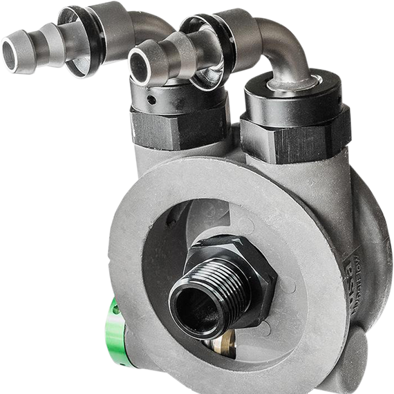 Caracteristicas: Built for reliable performance and easy installation Features a unique built-in oil by-pass valve and includes ProLine swivel fittings for easy oil plumbing Installs between the oil filter landing and the oil filter for easy access to the oil supply to install an oil cooler Built-in thermostatic oil valve allows oil to by-pass the oil cooler until reaching operating temperature for faster vehicle warmup times