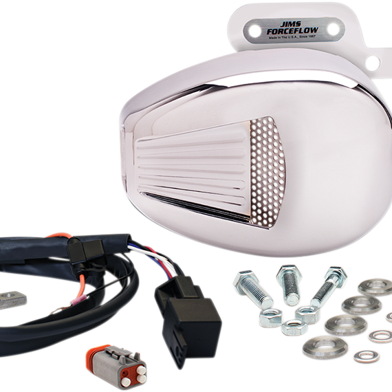 Caracteristicas: Includes Forceflow assembly with high-powered fan, OEM-type replacement horn, temperature switch, manual override switch, wiring, hardware and complete instructions Easy plug-and-play installation with no drilling At higher speeds, air is directed in through side scoop and around cylinder head and cylinder Temperature switch automatically turns the Forceflow on at 140° F Made in the U.S.A 110" motors require adapter mount (sold separately)