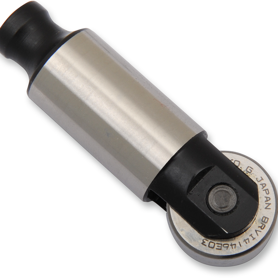 Caracteristicas: Standard solid rollers are designed around three working parts The outer wheel/roller has a 27% greater wall size - less harmonic distortion for better tracking of cam lobe Pin bearings are decreased in size by 12%, which increases rpm for more precise tracking Axle size is increased 36% and doubles as the inner race, so the pin bearing and complete roller assembly now rotates around the axle instead of an inner race, eliminating all possible movement in and around the axle Made in the U.S.A.