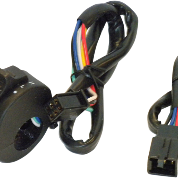 Caracteristicas: Features headlight switch with high-low beams and kill switch 20 mm wide; for 7/8" handlebars 19" long wire with six-pin connector; includes 8" extension wire with matching six-pin connector Voltage range 11V-15V; max amperage 2.5 amps