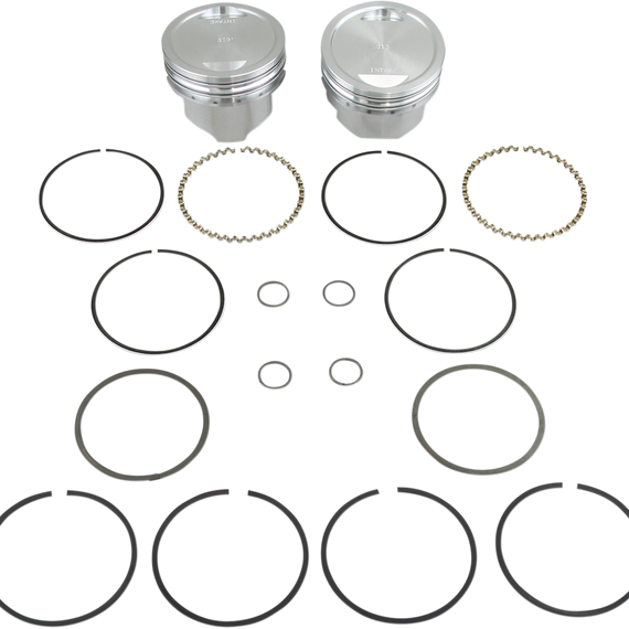 Caracteristicas: Manufactured from high-strength, T-5 heat-treated, 390 hypereutectic aluminum alloy Allows a tighter fit and longer piston and ring life Diamond-machined pistons are held to plus or minus one gram weight and less than one-half-thousandth-inch (.0005") tolerances from piston to piston Each kit contains two pistons, pins, spiral-lock pin clips and Hastings moly rings Replacement piston rings sold separately KB pistons can be installed tighter than other pistons. This results in less piston rock and better ring seal. Please read instructions included with piston for correct piston clearance Due to the thermal conductivity and design of KB pistons, special attention is required to the top ring end gap. Please read instructions furnished with piston for correct ring installation Use lock rings Part #0913-0001 (4-pk)