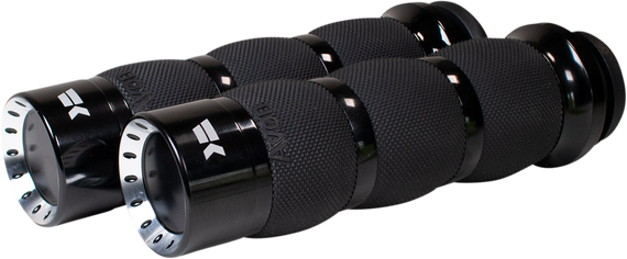 Caracteristicas: Seamless rubber grip technology Billet aluminum end caps and collars Match for Khrome Werks Turbine muffler end caps Made in the U.S.A.