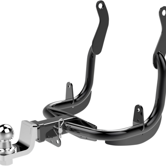Caracteristicas: 1-1/4" receiver trailer hitches mount to frame struts and the saddlebag supports Does not interfere with accessories such as docking kits for sissy bars, racks and tour boxes Made from .125" 1020 steel tubing, robotic-welded and high-gloss black powder-coated Safety chain and 5 pin male/female connector brackets included Includes polished chrome-plated hitch, 1-7/8" ball and pin with hitch clip Made in the U.S.A.