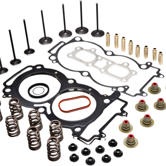 Caracteristicas: Kits contain all items to completely refresh and upgrade cylinder heads for popular Dirt/MX and Side x Side models Cylinder Head Service Kits include the below components: Lightweight Racing Valve Spring kits with steel or titanium retainers, beehive or dual valve springs, steel basewashers and Viton® valve stem seals A full set of C630 bronze high-performance valve guides for durability and heat management (standard size) A full top-end gasket kit including (base gasket, engine case gasket, exhaust gasket, head gasket, and other o-rings/washers depending on application)