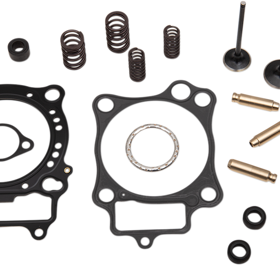 Caracteristicas: Kits contain all items to completely refresh and upgrade cylinder heads for popular Dirt/MX and Side x Side models Cylinder Head Service Kits include the below components: Lightweight Racing Valve Spring kits with steel or titanium retainers, beehive or dual valve springs, steel basewashers and Viton® valve stem seals A full set of C630 bronze high-performance valve guides for durability and heat management (standard size) A full top-end gasket kit including (base gasket, engine case gasket, exhaust gasket, head gasket, and other o-rings/washers depending on application)
