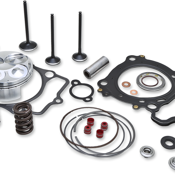 Caracteristicas: The only safe way to maximize compression; the valve reliefs in the piston are purposely convex and match the geometry of the dishes in the valves Conversion to Black Diamondƒ?½ stainless steel valves offers up to twice the life of the stock titanium valves No loss in performance Kit includes: piston, rings, clip and pin, Cometic top end gasket kit, Black Diamond engine valves (standard size) and dual spring titanium retainer springs (.395" lift intake, .0370" lift exhaust) Made in the U.S.A. Pistons, rings, valves and pin clips in this kit are designed to work as a system, they are NOT COMPATIBLE with the OEM components and should ONLY be used as a kit.
