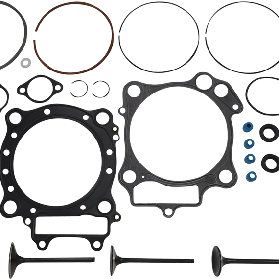 • Kit includes: piston, rings, clip and pin, Cometic top end gasket kit, Black Diamond engine valves (standard size) and dual spring titanium retainer springs (.395" lift intake, .0370" lift exhaust)